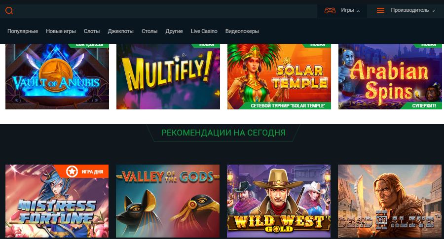 На главной странице можно найти live-casino с живым дилером, лотереи, розыгрыши Колеса Фортуны, видеопокер.
